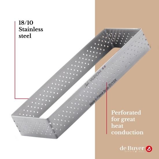 De Buyer Rectangular Tart Ring with Perforated Straight Edged in Stainless Steel