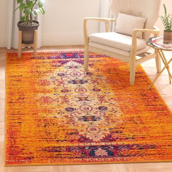 SAFAVIEH Monaco Collection 3' x 5' Orange / Multi MNC209H Modern Boho Abstract D