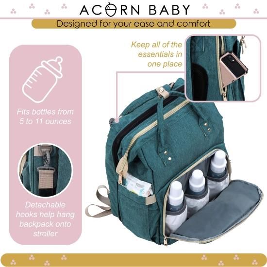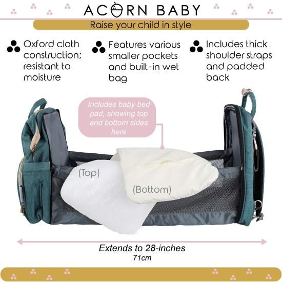 Acorn Baby Expanding Diaper Bag with Bassinet - Travel Diaper Bag with Changing