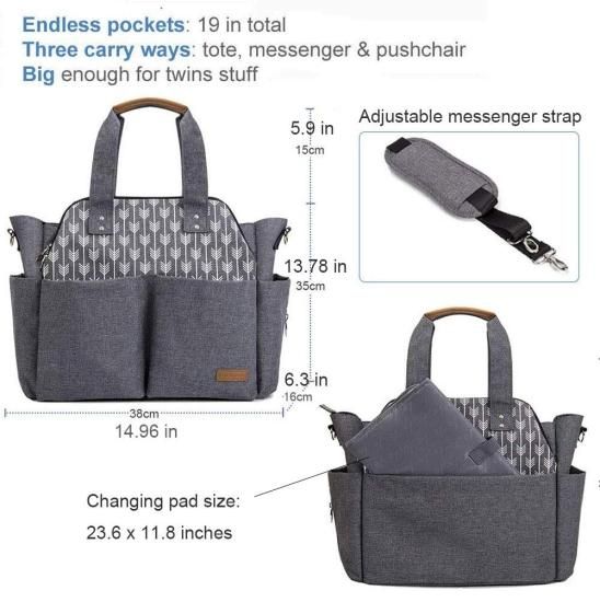 Lekebaby Diaper Bag Tote Purse Satchel Diaper Messenger for Mom and Girls Grey A