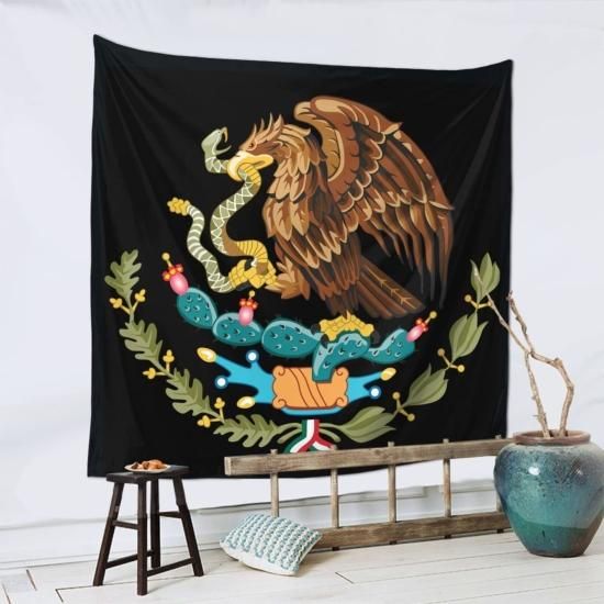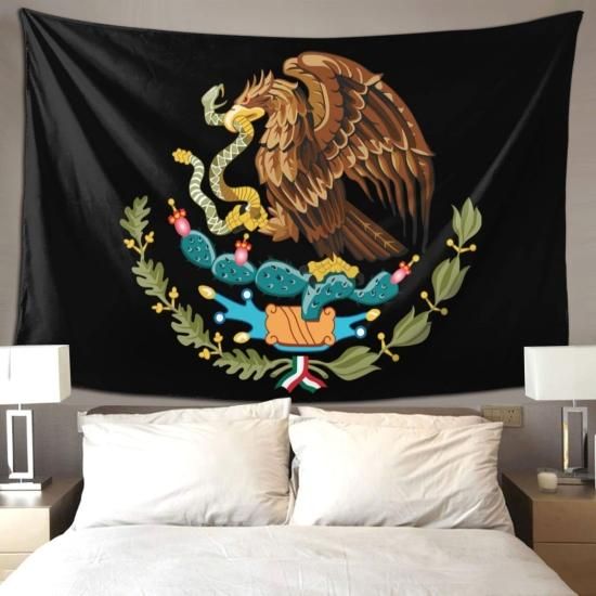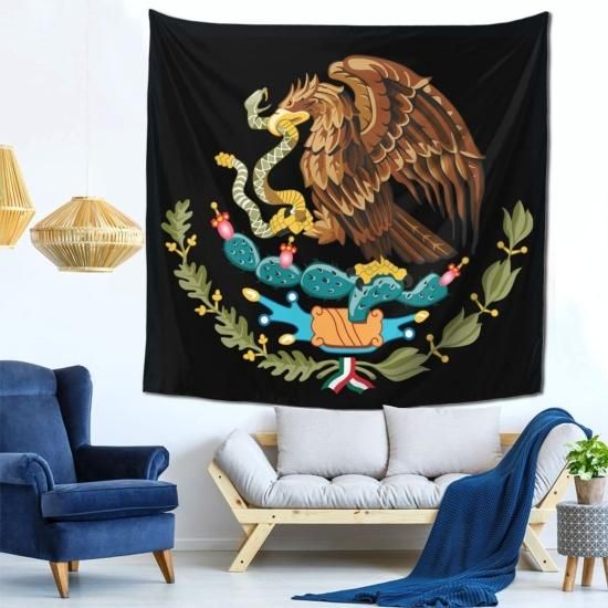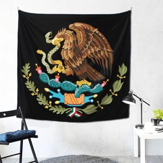 QSMX Mexico Flag Eagle Tapestry for Bedroom Room Decor Wall Hanging for Room Tap