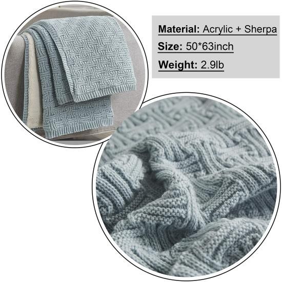Cable Knit Sherpa Thick Blanket Acrylic Textured Blanket Reversible Warm Blanket