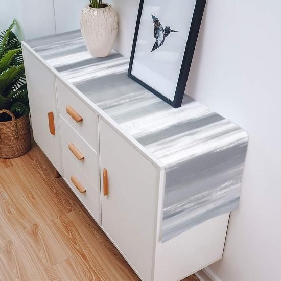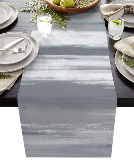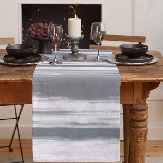 Flowraler 13x70 inch Linen Burlap Table Runner for Dining Room Grey White Textur