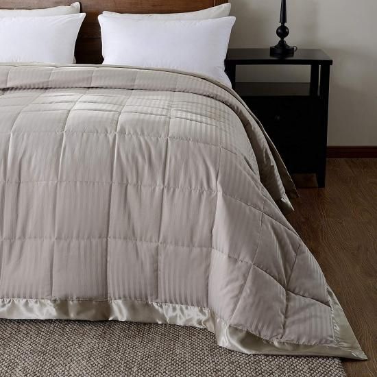 downluxe 軽量 クイーン ダウン 代替ブランケット サテントリム サンド 90 x 90インチ