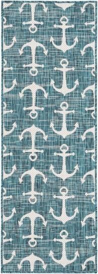Unique Loom Outdoor Coastal Collection Abstract Nautical Anchor Contemporary Bea