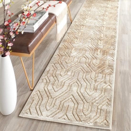 SAFAVIEH Paradise Collection 2'2 x 8' Cream/Brown PAR352 Art Deco Viscose Runner