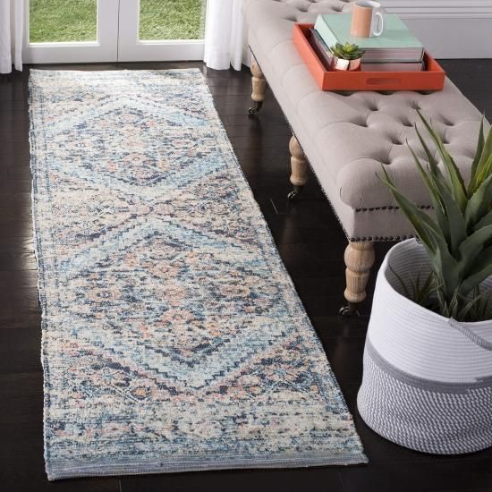 SAFAVIEH Saffron Collection 2'3 x 12' Blue / Turquoise SFN577A Handmade Boho Chi
