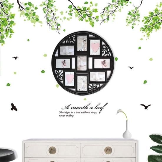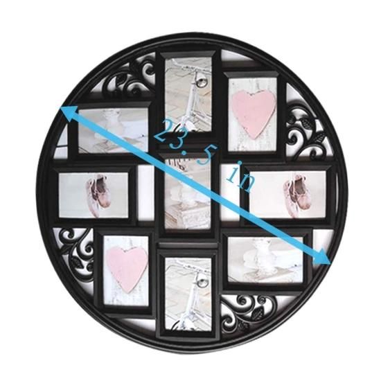 Mkun 4x6 ウォールコラージュフォトフレーム 4x6 - 円形壁掛け写真コラージュフレーム 葉の装飾付き 9- 開口部ブラック