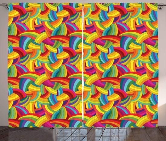 Ambesonne Psychedelic Curtains Colorful Rainbow Pattern with Stripes and Curves