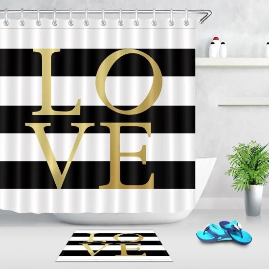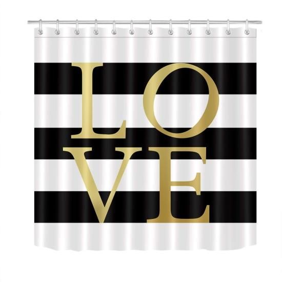 LB カスタムシャワーカーテン バスルーム用 防水 防カビ ポリエステル生地 72インチ フック付き 72x72 ブラック