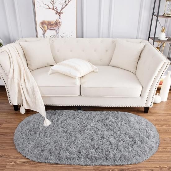 YJ.GWL ラグ シャギー マイクロファイバー 滑り止め付き 楕円 長さ160cm 幅80cm グレー