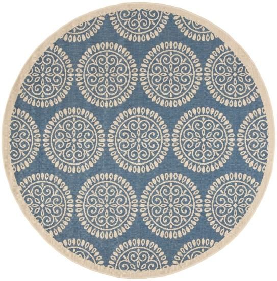 SAFAVIEH Linden Collection 6'7' x 6'7' Round Blue/Cream LND176M Geometric Indoor