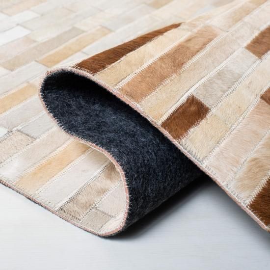 SAFAVIEH Studio Leather Collection 4' x 6' Ivory / Brown STL805A Handmade Mid-Ce