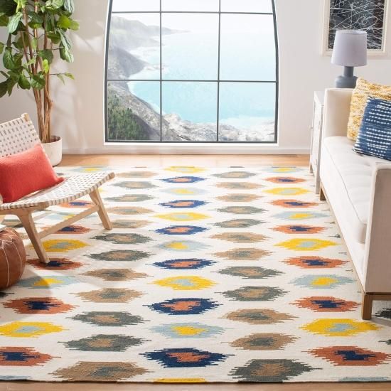 SAFAVIEH Dhurries Collection 6' x 9' Ivory/Multi DHU648A Handmade Flatweave Prem