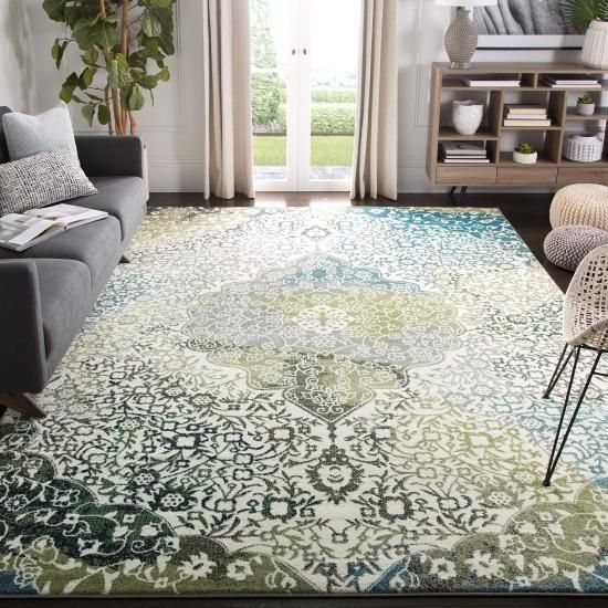 SAFAVIEH Watercolor Collection 4' x 6' Ivory / Peacock Blue WTC672B Boho Chic Me