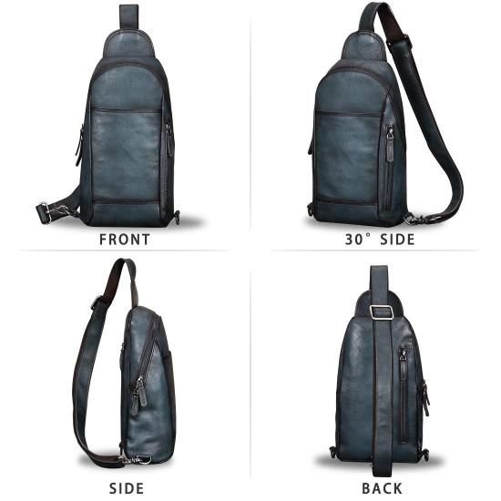 Genuine Leather Sling Bag for Men Crossbody Hiking Backpack Vintage Handmade Che