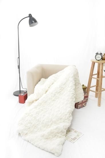 ハッピーケアテキスタイルHCT BKT-002ラグジュアリーQuilted Faux Furスローブランケット、50by 60、Ivory/White
