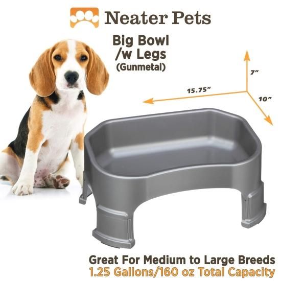 Neater Pet Brands Big Bowl with Leg Extensions - 1.25 Gallon/160 oz Gunmetal Gre