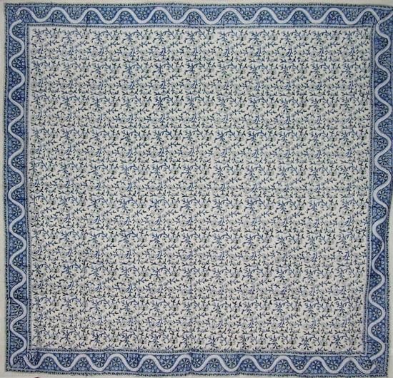India Arts ハンドブロック プリント 花柄 正方形 コットン テーブルクロス 72インチ x 72インチ ブルー