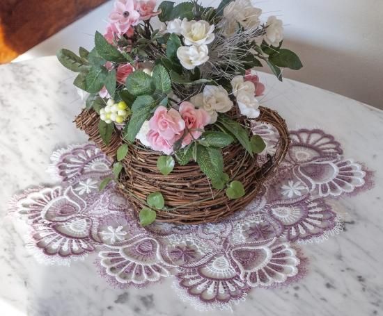 リネン、アートとシングス ホワイトモーブローズジャカード孔雀テールレースドイリープレースマット スモールテーブルセンターピース ピンクライトパープル 約14イン