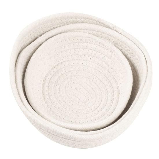 3-Piece Small Cotton Rope Woven Storage Basket Set White Nesting Bins for Organi
