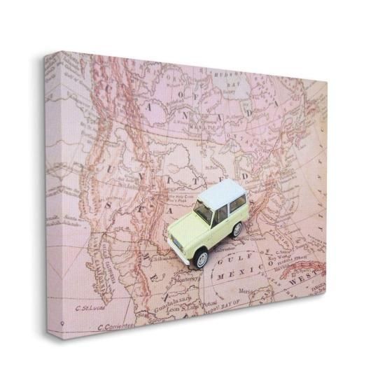 Stupell Industries Vintage World Traveler Retro Automobile Pink Map Designed by
