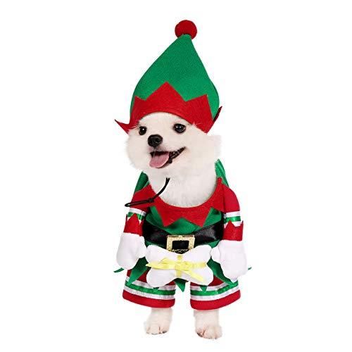 Filhome Dog Cat Christmas Elf Costume with Hat Pet Christmas Winter Fleece Coat