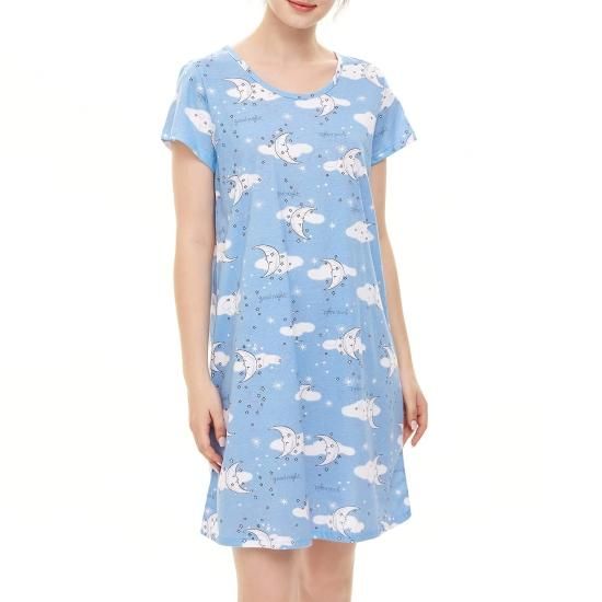 Nightgowns for Women Cotton Night Shirts Short Sleeve Night Gown Dress Casual Pa