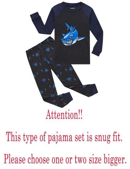 shark Little Boys Long Sleeve Pajamas Sets 100% Cotton Pyjamas Kids Pjs Size 5 G