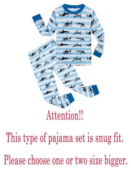 shark Little Boys Long Sleeve Pajamas Sets 100% Cotton Pyjamas Kids Pjs Size 6 B