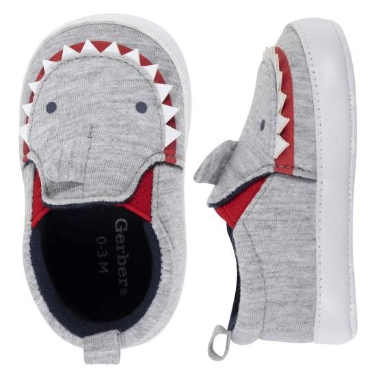 Gerber Baby Sneakers Crib Shoes Newborn Neutral Boy Girl 0-9 Month Grey Shark 0