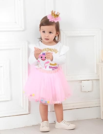 ADIRUN Baby Shark Birthday Outfit 3T Toddler Girl Clothes Ruffled Baby Shark Lon
