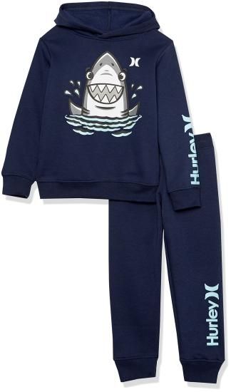 Hurley Baby Boys' Hoodie and Joggers 2-Piece Outfit Set Navy/Shark 3T
