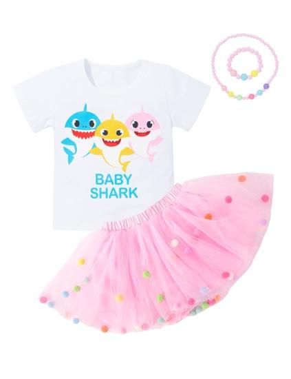 Baby Shark Toddler Girl Clothes Ruffle Baby Shark Shirt + Tutu Dress 4Pcs Toddle