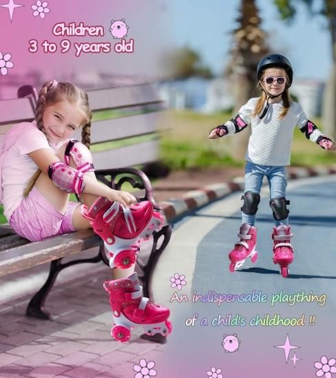Quad Roller Skates for Kids Girls with Adjustable Size Age 3-9 Double Brakes Lum