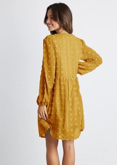 KIRUNDO Fall 2022 Women's Dresses Long Sleeve Short Mini Dress V Neck Flowy Casu