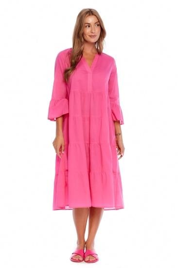 Mud Pie Womens Portland Midi Dress with 3/4 Sleeves Pink Small
