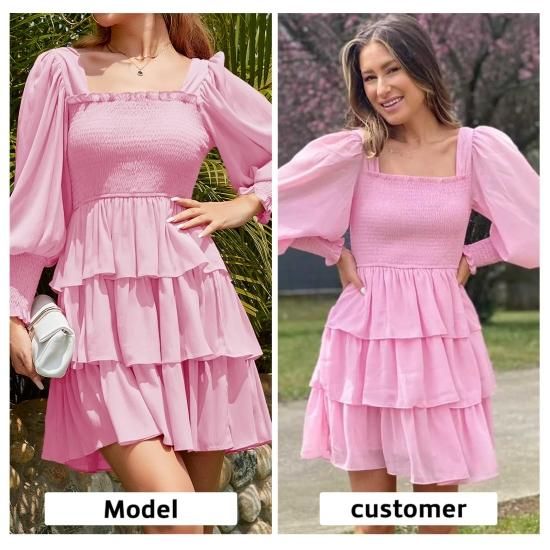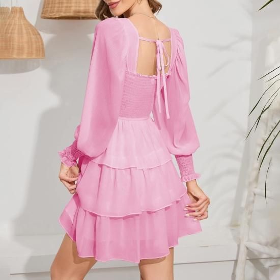 Byinns Women's Square Neck Ruffle Dress Jumpsuit Long Lantern Sleeve Floral Prin
