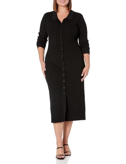 The Drop レディースワンピース、Jaxon ニット リブ ボタンダウン、ブラック、M