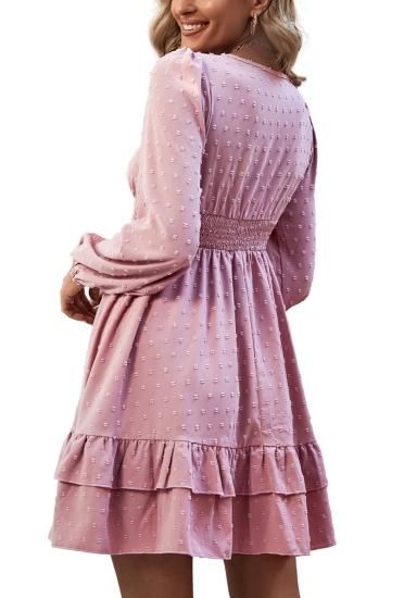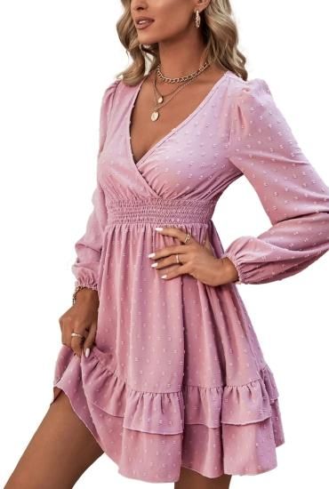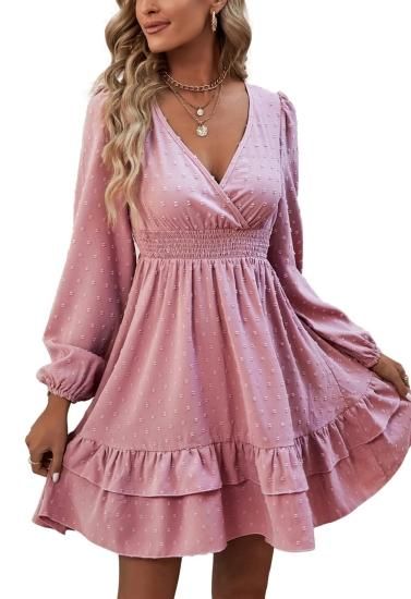 Rooscier Women's Wrap V Neck Swing Ruffle Swiss Dots Long Sleeve Mini Dress Soli