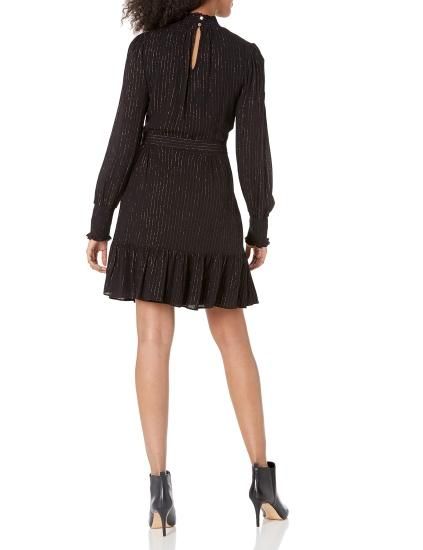 Tommy Hilfiger Women's Fit and Flare Dress Black/Gold 12