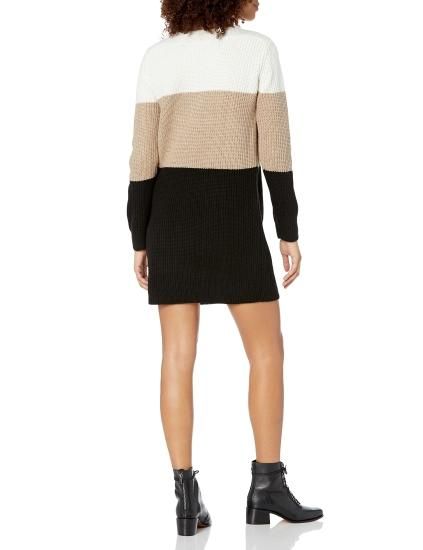 Tommy Hilfiger Women's Sweater Dress Light Fawn Heather/Black/Ivory Large