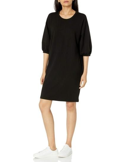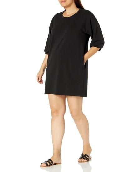 The Drop レディース Estelle スウェットミニワンピース パフスリーブ フレンチテリー ブラック 4XL