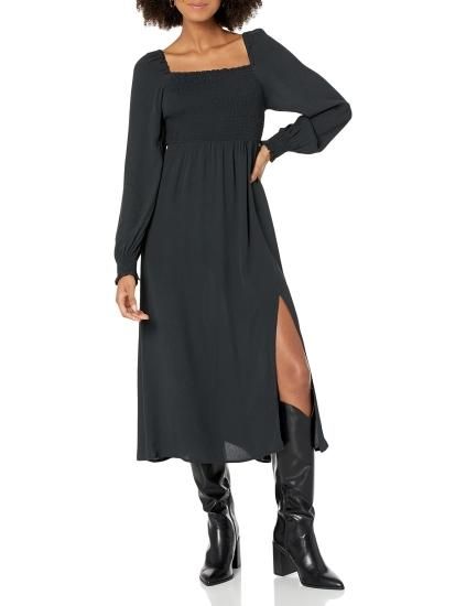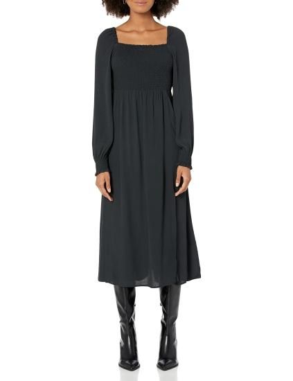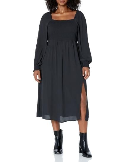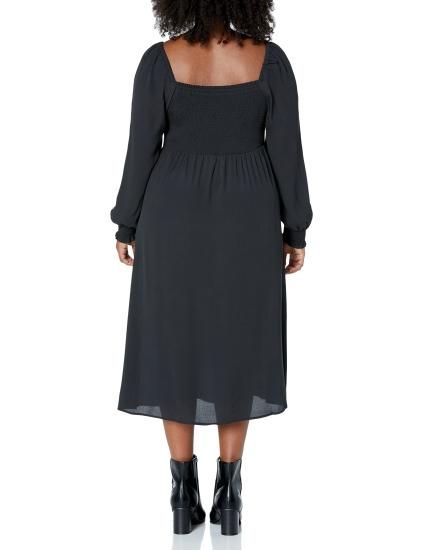 The Drop レディースワンピース、Karl ミディ丈 長袖 スモック、ブラック、2XL