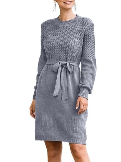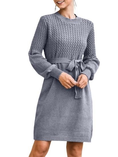 Dyexces Sweater Dress for Women Crewneck Tunic Cable Knitted Dress Lantern Sleev