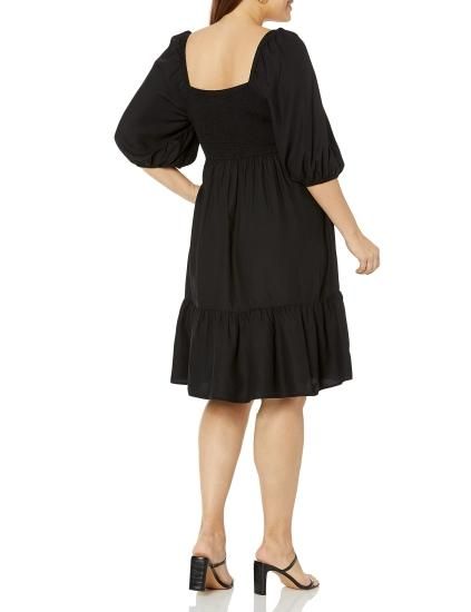 The Drop ドレス Lexi パフスリーブ スイートハートネックライン スモックバックドレス レディース SS22-101 ブラック 6XL Plus