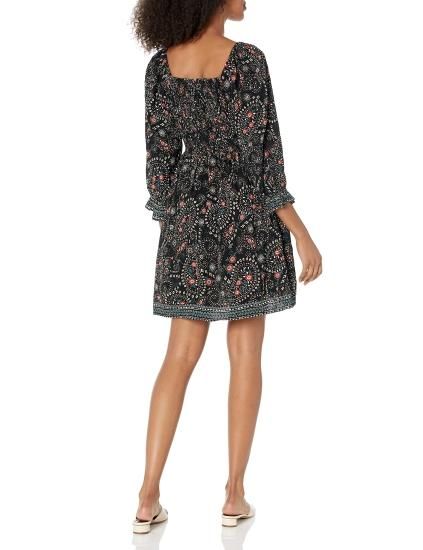 Angie Women's Long Sleeve Twist Front Keyhole Tiered Skirt Dress Black Large