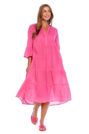 Mud Pie Womens Portland Midi Dress with 3/4 Sleeves Pink Small