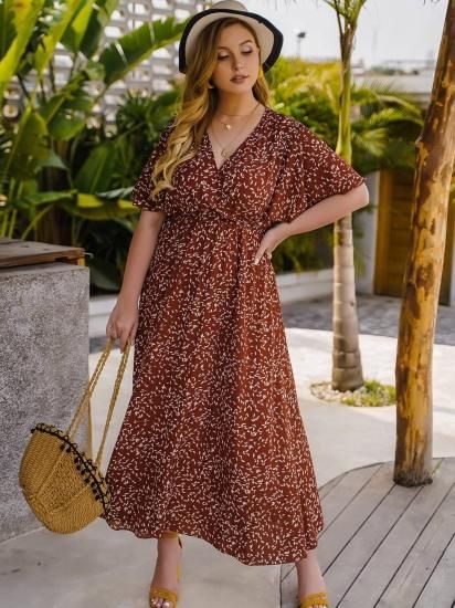 Floerns Women's Plus Size Boho Floral V Neck Short Sleeve A Line Long Dress Rust