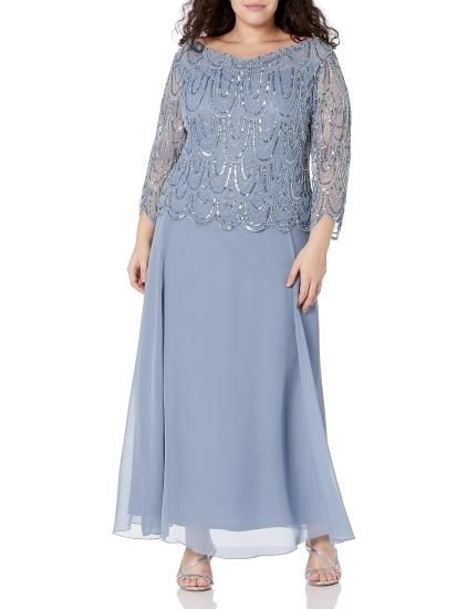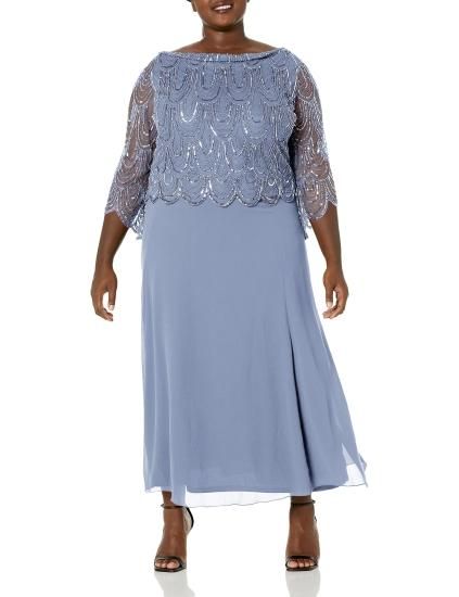 J Kara レディース 7分丈 スカラップ ビーズ ポップオーバー ガウン プラス US サイズ 22 Plus カラー ブルー